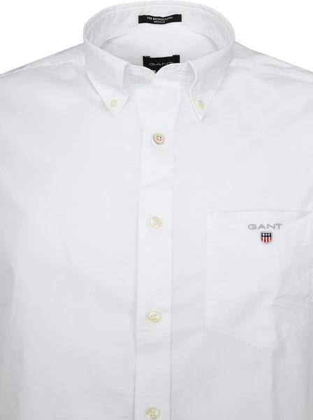 Draag dit Broadcloth shirt van Gant en je geeft je outfit een klassieke, casual uitstraling. Het overhemd heeft een tijdloze witte kleur en is afgewerkt met een geborduurd merklogo op de borst. Daarnaast is het herenshirt afgewerkt met een casual button down boord, enkele manchetten, een borstzakje en contrasterende lichte knopen. Door het trendy uni dessin krijgt het klassieke witte overhemd een casual twist!
