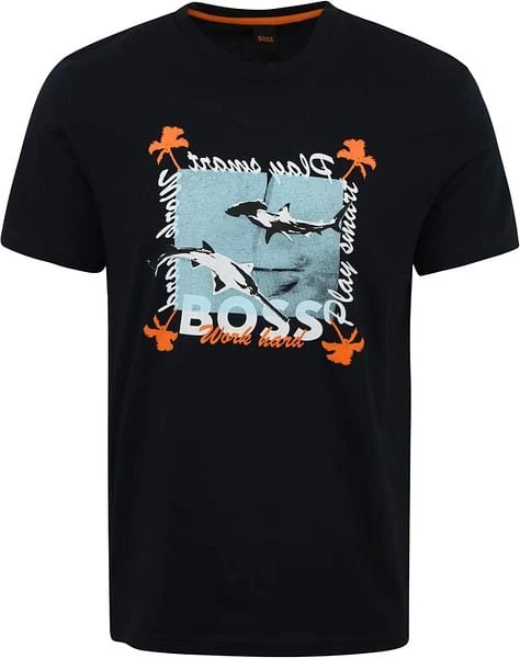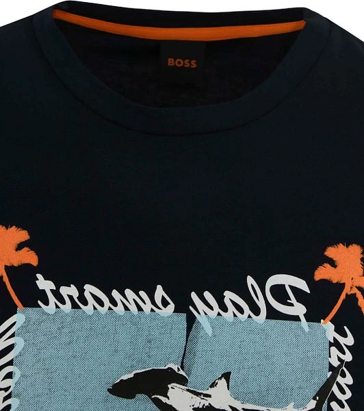 Met dit shirt van Hugo Boss voorzie jij jouw outfit van een stijlvolle en moderne uitstraling. Dit T-shirt heeft een donkerblauwe kleur en is voorzien van een printlogo op de borst.De Modern-Fit pasvorm geeft jou voldoende bewegingsruimte, duurzaamheid en voorziet je outfit een stijlvolle en modieuze uitstraling. Draag het shirt op een casual overhemd of op een modern vest. Kortom: een premium t-shirt die het hele seizoen door bij elk outfit past.