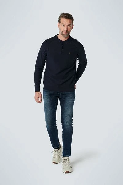 Met deze trendy long sleeve polo van No-Excess voorzie jij jouw outfit van een modieuze uitstraling. Deze herenpolo heeft een licht getailleerde Modern-Fit pasvorm en is gemaakt van katoen. Daardoor krijg het poloshirt een zachte touch, is deze vormvast en erg comfortabel en biedt deze voldoende bewegingsruimte.