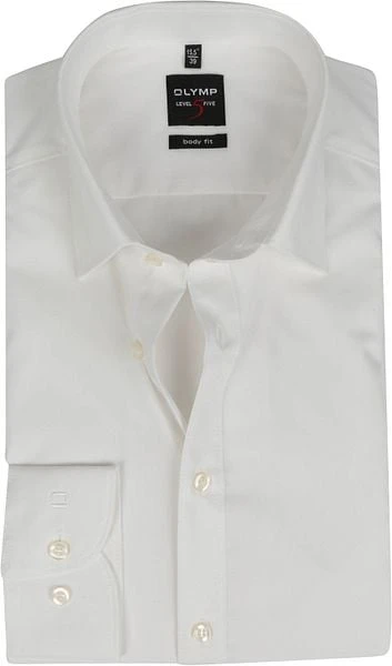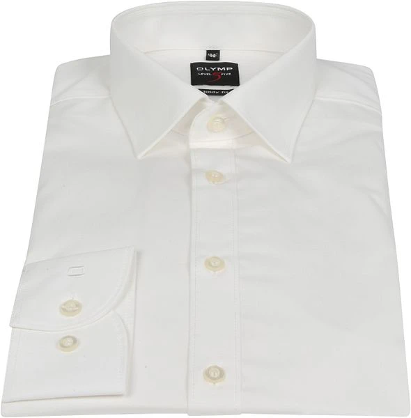 Dit off-white overhemd van Olymp is afkomstig uit de Level 5 collectie. Deze collectie overhemden staat bekend om de strakke, body-fit pasvorm die getailleerd langs het lichaam valt. De overhemden met body-fit pasvorm zijn dan ook zeer geschikt voor mannen met een slank postuur.