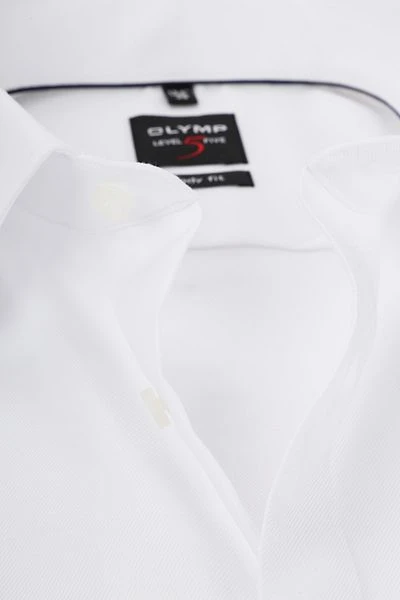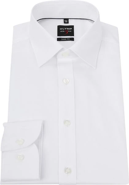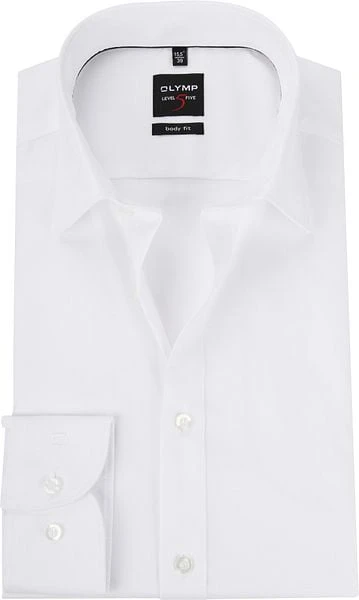 Dit Olymp Level 5 overhemd heeft een extra getailleerde body-fit pasvorm, een tijdloze witte kleur en is afgewerkt met kent boord en lichtgekleurde knopen.