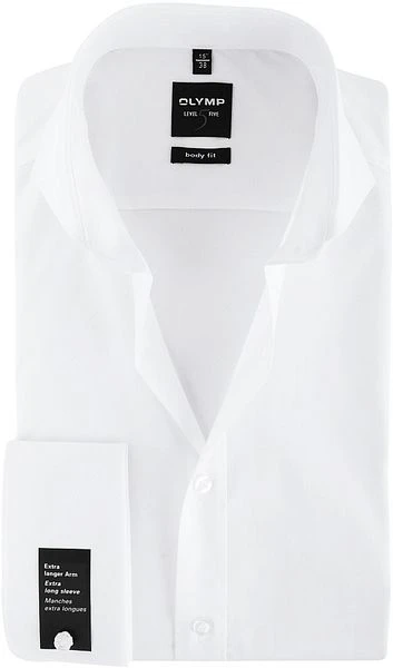 Draagt u graag een strak overhemd? Dan is deze witte variant uit de Olymp Level 5 collectie wellicht geschikt voor u! Dit klassieke overhemd heeft een extra getailleerde body-fit pasvorm en is daarnaast voorzien van extra lange mouwen (sleeve 7). Hierdoor is dit overhemd met dubbele manchet speciaal geschikt voor de lange heren onder ons.