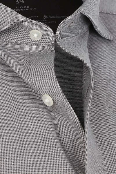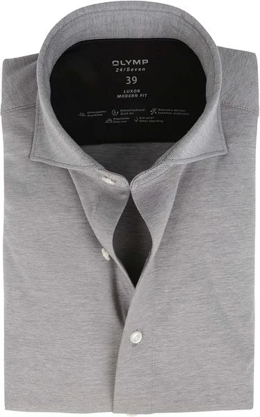 Het OLYMP 24/Seven-Dynamic-Flex-Jersey-All-Time-Shirt: comfortabel als een T-shirt, stijlvol als een overhemd. Het modische shirt heeft een goed te combineren grijze kleur en is gemaakt van een zachte, elastische en vormbestendige jersey binding. Daarnaast is het dress-shirt voorzien van een kent boord, enkele manchetten en bijpassende donkergekleurde knopen.
