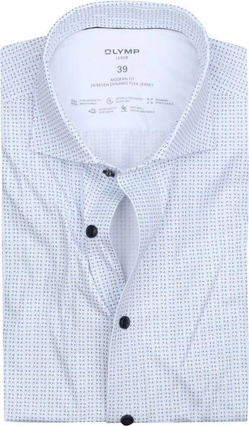 Met dit Olymp shirt kom je altijd goed voor de dag op elke gelegenheid. Dit shirt van Olymp heeft een Modern Fit pasvorm en valt licht getailleerd om je lichaam. Dit shirt is gemaakt van katoen, waardoor het een ademend, slijtvast en zacht overhemd is. Daarnaast is het sneldrogend, bevat het stretch, is het makkelijk te strijken en is het geur absorberend. Het overhemd is zowel formeel als informeel te dragen.