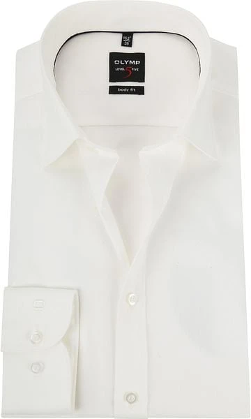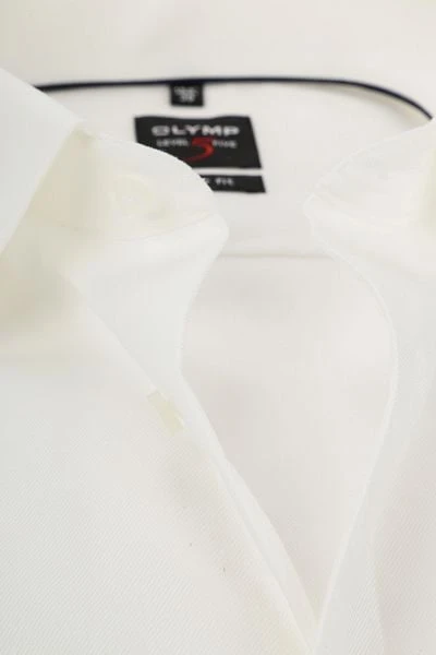 Een Olymp overhemd uit de Level 5 collectie, die bekend staat om haar stijlvolle herenshirts en een mooie slanke pasvorm. Dit overhemd heeft een off-white kleur, hierdoor geeft dit je een moderne maar ook klassieke uitstraling. Eenvoudig te combineren met zowel een luxe pak als een casual chino.