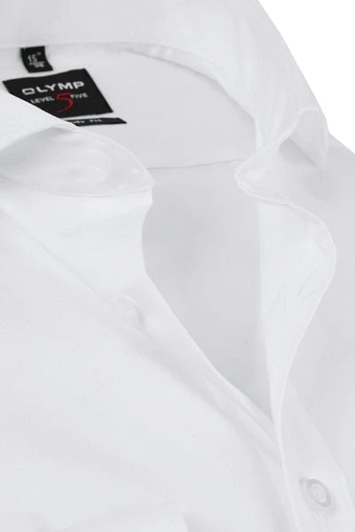 Een Olymp overhemd uit de Level 5 collectie, die bekend staat om haar stijlvolle herenshirts en een mooie slanke pasvorm. Daarnaast is het overhemd voorzien van een modische cutaway boord en gemaakt van Easy-iron katoen gemixt met elastaan (stretch), wat voor een trendy look en een hoog draagcomfort zorgt.