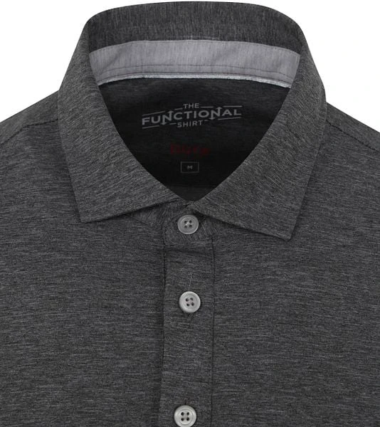 De Functional Shirts van Pure combineren zakelijke kleding met sportkleding. Het polo-shirt heeft een stijlvolle antraciet kleur en is afgewerkt met een moderne boord en korte mouwen, wat het functionele shirt een verzorgde uitstraling geeft. De slanke Slim-Fit pasvorm zorgt er voor dat het poloshirt getailleerd om het bovenlichaam valt. De polo is gemaakt van polyamide (nylon) en elastaan (stretch), wat het herenshirt naast een super stretch ook andere praktische eigenschappen geeft. Zo is het hemd snel drogend, erg ademend en biedt het je de mogelijkheid om vrij te bewegen, naar welke activiteit je de polo ook aantrekt.