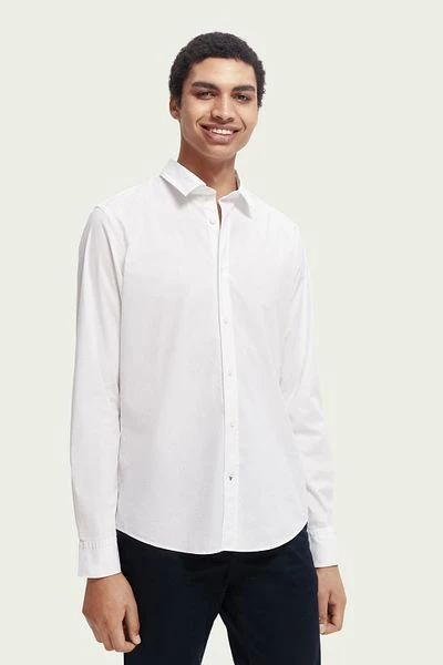 Alle kleding van Scotch en Soda is rijk aan details en heeft een uitstekende kwaliteit. De ontwerpers van Scotch laten geen enkel middel onbenut bij het uitwerken en verfijnen van hun kledingstukken, waarbij ook de afwerking van de binnenkant niet wordt vergeten. Dit overhemd heeft een stijlvolle witte kleur afgewerkt met knopen en enkel manchetten.