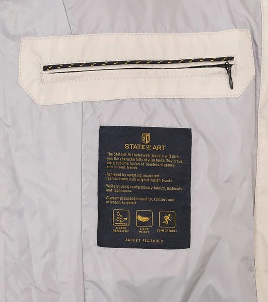 Met deze jas van State of Art komt je het hele seizoen stijlvol voor de dag. De jas heeft een Regular-Fit pasvorm en valt normaal om het bovenlichaam. De herenjas is voorzien van een ritssluiting, twee steekzakken, twee binnenzakken en een opstaande kraag met ritssluiting. De lichtgewicht jas is afgewerkt met een waterafstotende coating, waardoor de jas geschikt is voor verschillende weersomstandigheden.