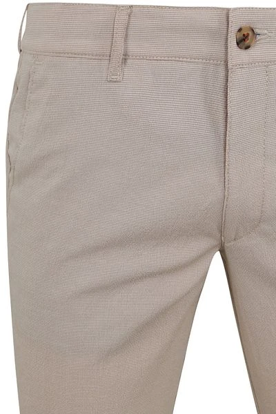 Met de Pico chino van Suitable maak je een stijlvolle indruk. De modern-fit pasvorm zorgt ervoor dat de beige geruite broek licht getailleerd langs je lichaam valt. Hierdoor is de chino ideaal te combineren met een polo of klassiek overhemd.