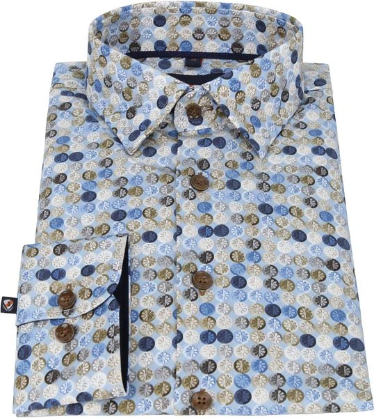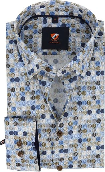 Geef je outfit een modieuze twist, met dit overhemd van Suitable. Het herenshirt heeft een blauwe kleur en is voorzien van een grafisch multicolour patroon. Dit geeft het shirt een zeer trendy uitstraling. Daarnaast is het moderne overhemd voorzien van een Hidden Button Down boord, enkele manchetten en bijpassende donkerblauwe knopen.