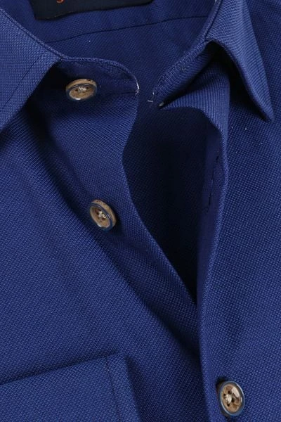 Met dit overhemd van Suitable haal je een casual dress-shirt in huis die je outfit een modische twist geeft. Het herenshirt heeft een modieuze blauwe ‘Indigo’ kleur met subtiel melange in een pique binding, die zorgt voor een trendy uitstraling. Daarnaast is het moderne overhemd voorzien van een button down (HBD) boord, enkele manchetten en bijpassende knopen.