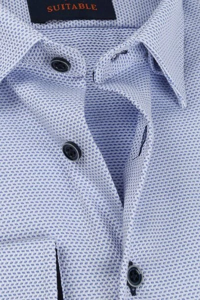 Met dit Wiber overhemd van Suitable haal je een casual dress-shirt in huis die je outfit een modische twist geeft. Het herenshirt heeft een stijlvolle blauwe kleur met subtiel melange in een pique binding, die zorgt voor een trendy uitstraling. Daarnaast is het moderne overhemd voorzien van een button down (HBD) boord, enkele manchetten en bijpassende donkerblauwe knopen.