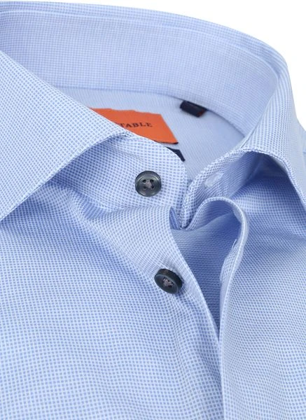 Dit overhemd van Suitable heeft een blauwe kleur en is in jacquard geweven, waardoor er een subtiel melange in het overhemd zit. Daarnaast is het overhemd voorzien van een widespread boord, enkele manchetten en donkergekleurde knopen. Het herenshirt is gemaakt van 100% katoen en biedt daardoor optimaal draagcomfort. Het hemd heeft een slim-fit pasvorm die getailleerd valt en is voorzien van een widespread boord en enkele manchetten.