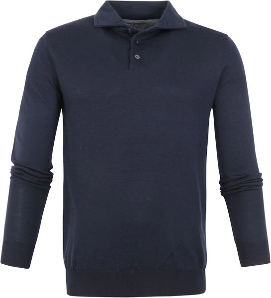 Suitable Prestige Merino Anton Long Sleeve Polo Donkerblauw