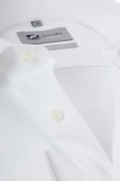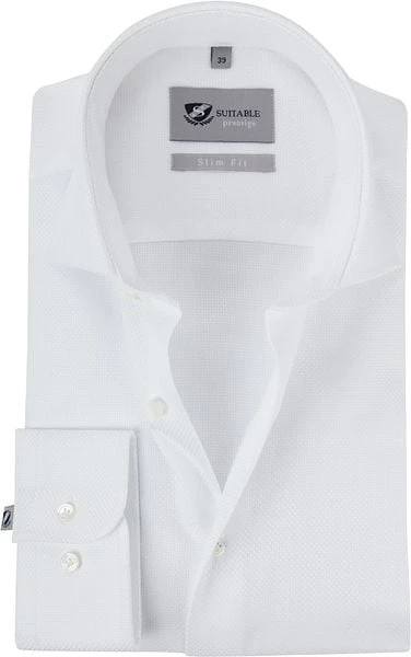 Met dit stijlvolle overhemd uit de Prestige collectie van Suitable haal je een moderne variant van het klassieke witte dress-shirt in huis. Het herenshirt heeft namelijk een grove Oxford binding en is afgewerkt met een trendy cutaway boord, enkele manchetten en bijpassende lichtgekleurde knopen. Dit geeft het Prestige shirt een tijdloze uitstraling met een moderne twist, waardoor je stijlvol en goed gekleed voor de dag komt.