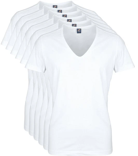 Set van 6 witte, basic T-shirts met extra diepe V-hals.